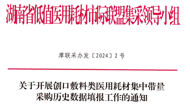《通知》明確,將由湘潭市醫(yī)保局牽頭組建市際聯(lián)盟,開展全省創(chuàng)口敷料類醫(yī)用耗材集中帶量采購,現(xiàn)正式啟動(dòng)歷史采購數(shù)據(jù)填報(bào)工作。