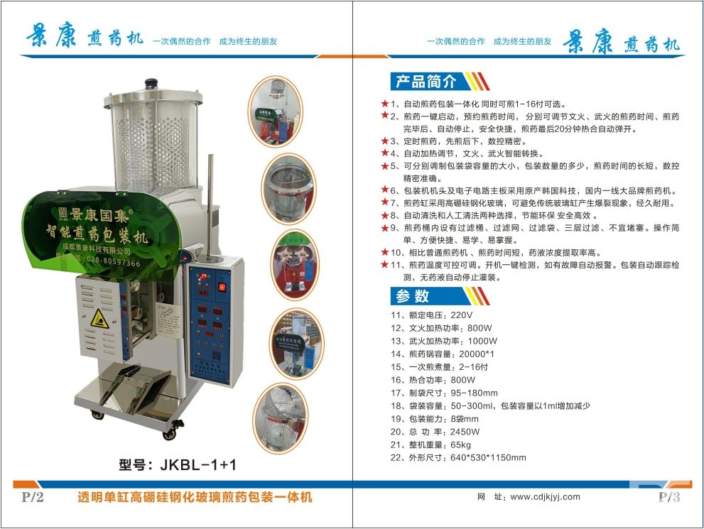 1、透明單缸高硼硅鋼化玻璃煎藥包裝一體機