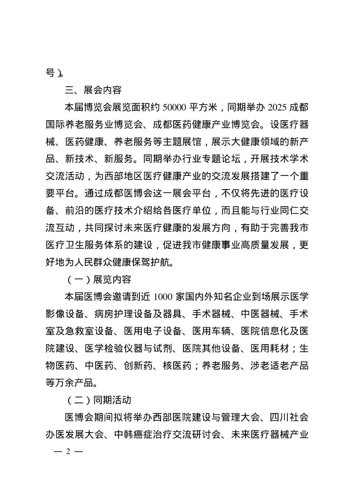 成都市衛(wèi)生健康委員會關(guān)于組織參加第32屆成都醫(yī)療健康博覽會的通知