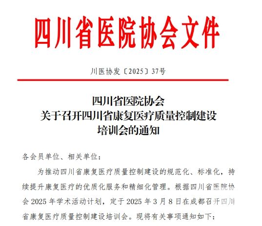四川省醫(yī)院協(xié)會(huì)關(guān)于召開四川省康復(fù)醫(yī)療質(zhì)量控制建設(shè)培訓(xùn)會(huì)的通知