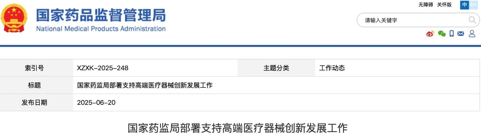 會議指出,黨中央、國務(wù)院高度重視高端醫(yī)療器械創(chuàng)新發(fā)展,黨的二十屆三中全會明確提出要健全支持創(chuàng)新醫(yī)療器械發(fā)展機(jī)制,2024年,國務(wù)院辦公廳印發(fā)《關(guān)于全面深化藥品醫(yī)療器械監(jiān)管改革促進(jìn)醫(yī)藥產(chǎn)業(yè)高質(zhì)量發(fā)展的意見》(國辦發(fā)〔2024〕53號),提出要深化藥品醫(yī)療器械監(jiān)管全過程改革,明確了醫(yī)療器械領(lǐng)域支持要點。