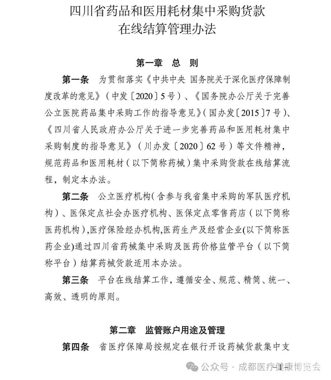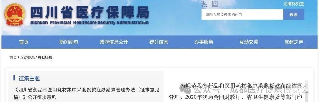 近日,四川醫(yī)保局發(fā)布《四川省藥品和醫(yī)用耗材集中采購貨款在線結(jié)算管理辦法(征求意見稿)》(簡稱《意見稿》,完整見文末)。