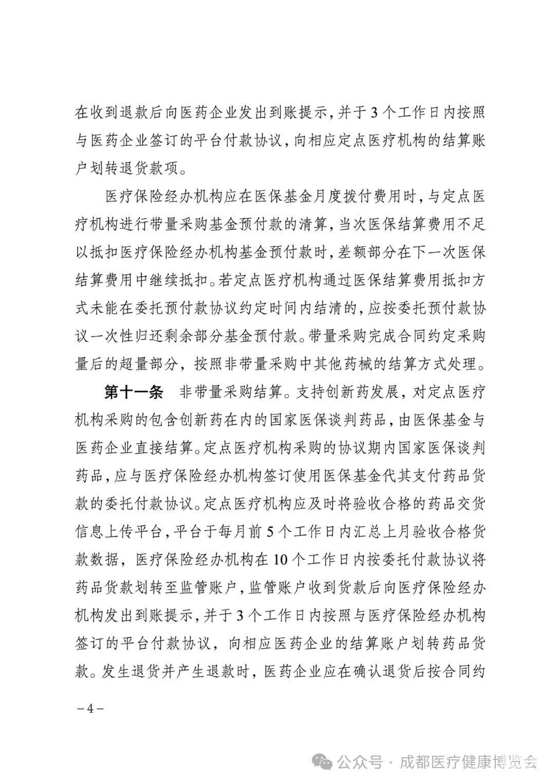 逐步擴(kuò)大醫(yī);饘(duì)醫(yī)藥企業(yè)的直接結(jié)算,目前已超過10個(gè)省份開展了醫(yī)保基金對(duì)集采中選企業(yè)的直接結(jié)算,企業(yè)的貨款結(jié)算周期從原來的至少6個(gè)月縮減為交貨驗(yàn)收合格后次月底前,2025年年底將基本推開。