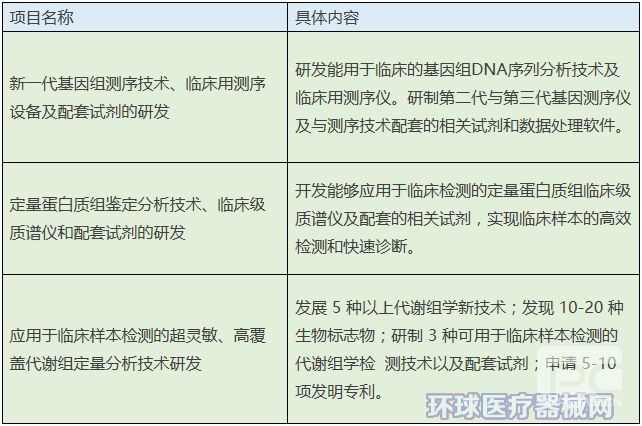 本項(xiàng)目涉及“生命組學(xué)研究”、大型隊(duì)列建設(shè) 、精準(zhǔn)醫(yī)學(xué)大數(shù)據(jù)和 疾病精準(zhǔn)防診治方案等重點(diǎn)任務(wù)。其中,醫(yī)療器械企業(yè)可以參與的是“新一代臨床用生命組學(xué)技術(shù)的研發(fā)”。