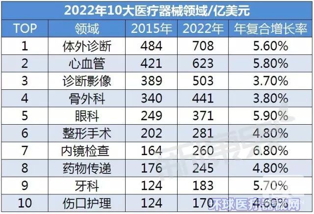 著名咨詢公司Evaluate旗下的EvaluateMedTech近日發(fā)布了一項對2016年醫(yī)療器械行業(yè)的總結(jié)以及對2022年的展望,報告稱2015-2022年醫(yī)療器械市場的年復(fù)合增長率預(yù)計約為5.2%,2022年全球醫(yī)療器械市場總?cè)萘繉⑦_到5298億美元。